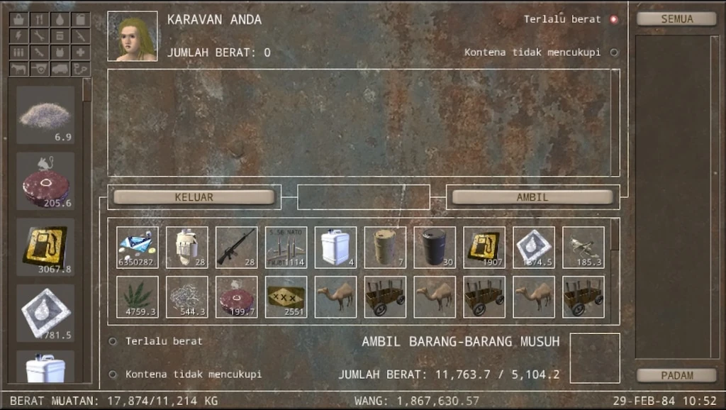 En el juego normal, el redondeo se nota más en la capacidad de carga. La capacidad de carga en la pestaña Tripulación se redondea al número entero más cercano, mientras que la capacidad de carga en la pestaña Equipo (llamada CARGA) se redondea al 0,1 más cercano. Para los animales, el juego puede mostrar una capacidad de 50, pero el valor real podría estar entre 49,5 (incluido) y 50,5 (exclusivo). Dado que un carro multiplicará la capacidad real por 3 (o 3,5), la carga máxima equipada con carro de dos animales con la misma capacidad mostrada puede diferir hasta en 3 puntos con un carro adjunto.